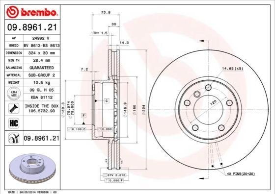 Гальмівний диск BREMBO 09.8961.21