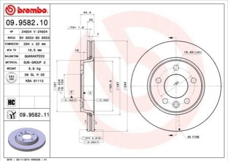 Гальмівний диск BREMBO 09.9582.11