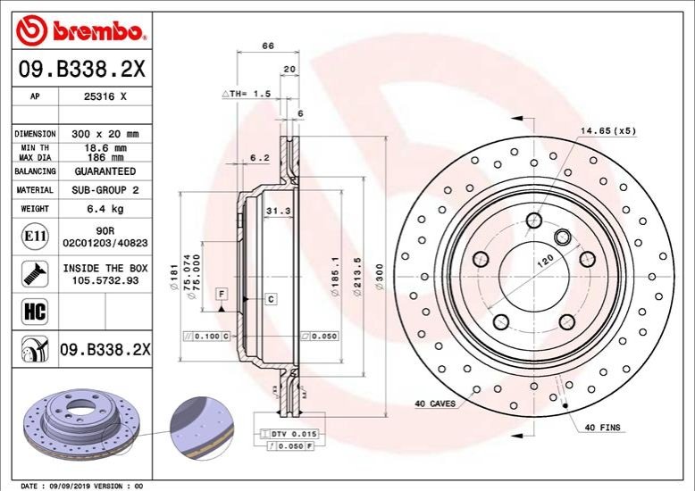 Гальмівний диск BREMBO 09.B338.2X