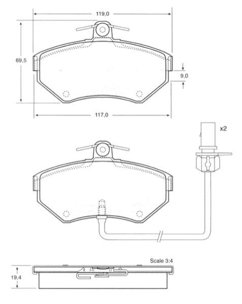 Кількість гальмівних колодок: 4