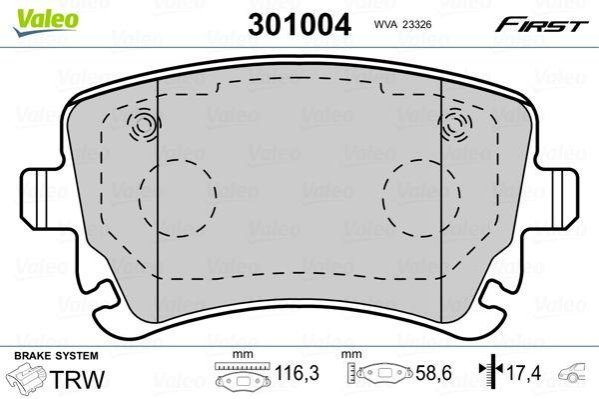 Гальмівні колодки дискові VAG A4/A6/A8/Multivan/Transporter "1,9-6,0 "R "02-15 Valeo 301004